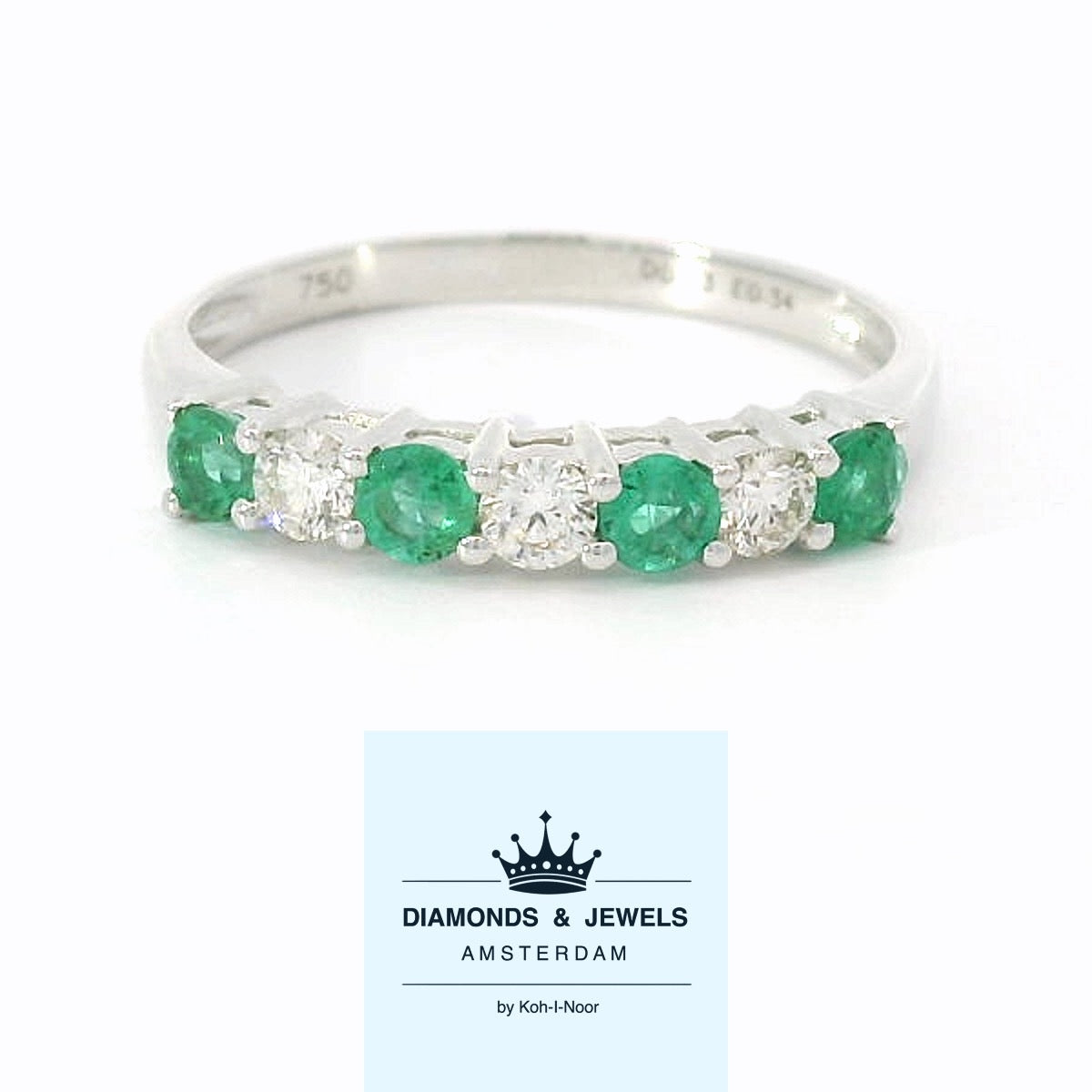 De afwisseling van edelstenen maakt deze ring bijzonder betekenisvol. Diamanten staan symbool voor eeuwigheid, kracht en zuiverheid. Ze vangen het licht op een manier die blijft fascineren, elke dag opnieuw. Smaragden, met hun rijke groene kleur, worden al eeuwenlang geassocieerd met liefde, groei, balans en vernieuwing. Samen vertellen deze stenen een verhaal van blijvende liefde en levenskracht. Een prachtige combinatie om te dragen of cadeau te geven.