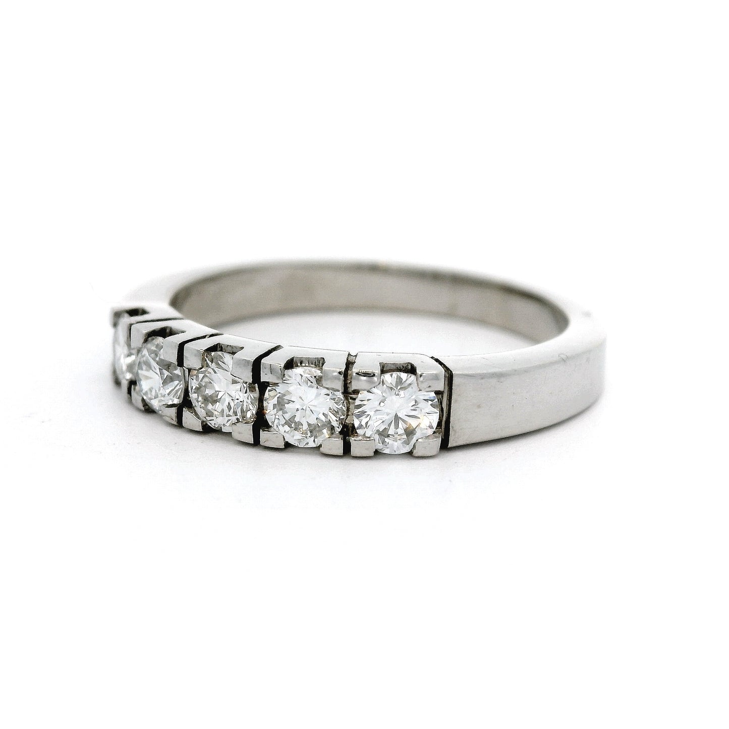 Deze klassieke witgouden rijring met diamanten is vervaardigd uit hoogwaardig 14 karaat witgoud en staat symbool voor tijdloze elegantie. Dankzij het verfijnde en blijvende ontwerp is deze ring altijd in de mode en een sieraad om generaties lang van te genieten. Diamanten zijn immers voor eeuwig.